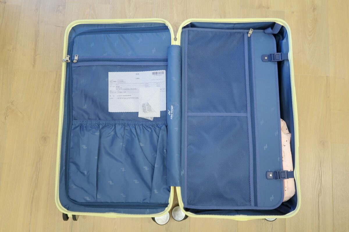 不要裡面以為沒裝什麼東西喔!其實行李箱內是擺放了兩層的收納袋