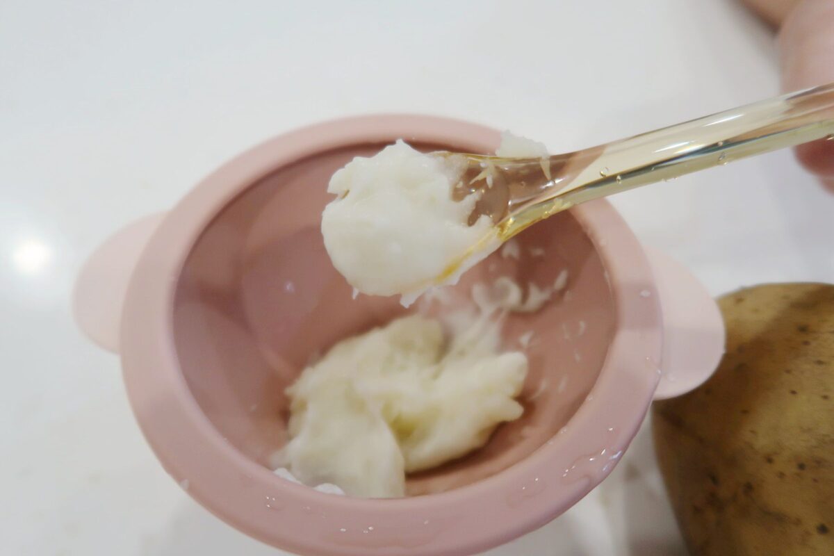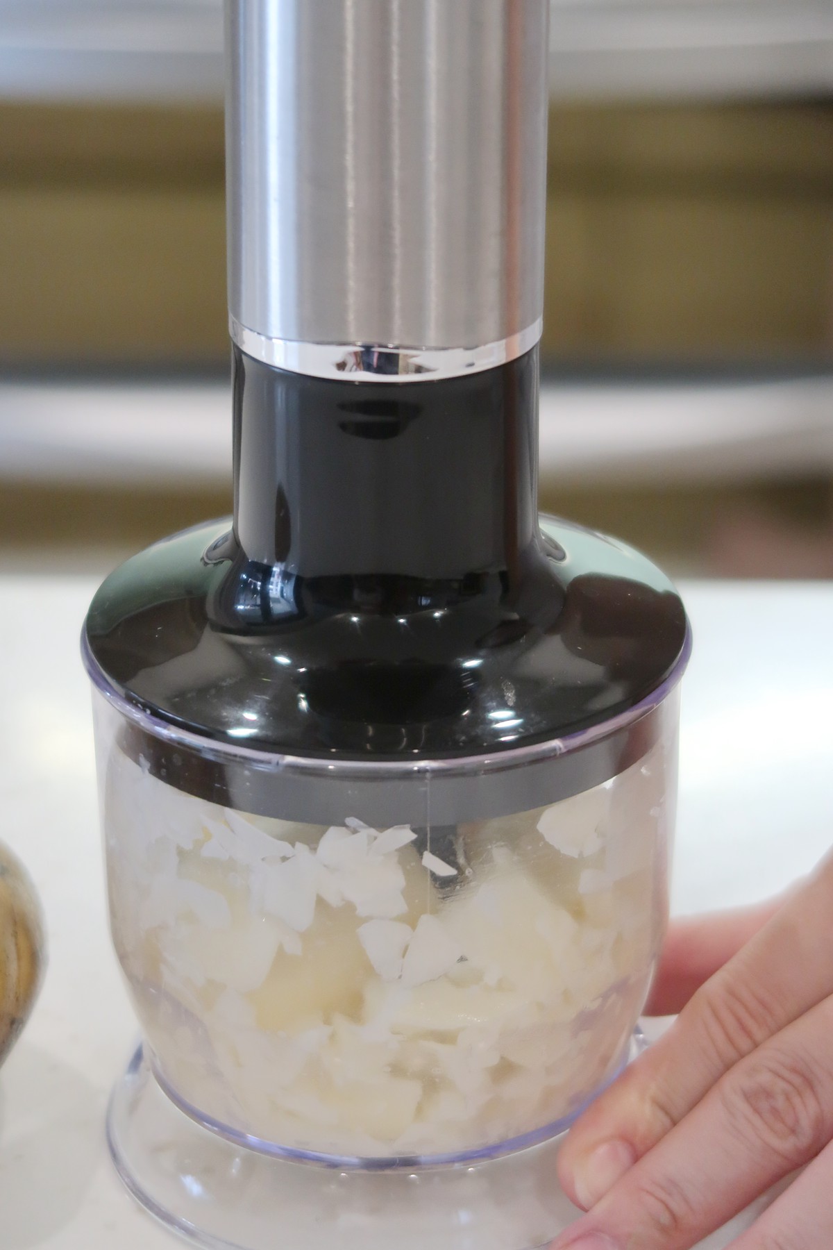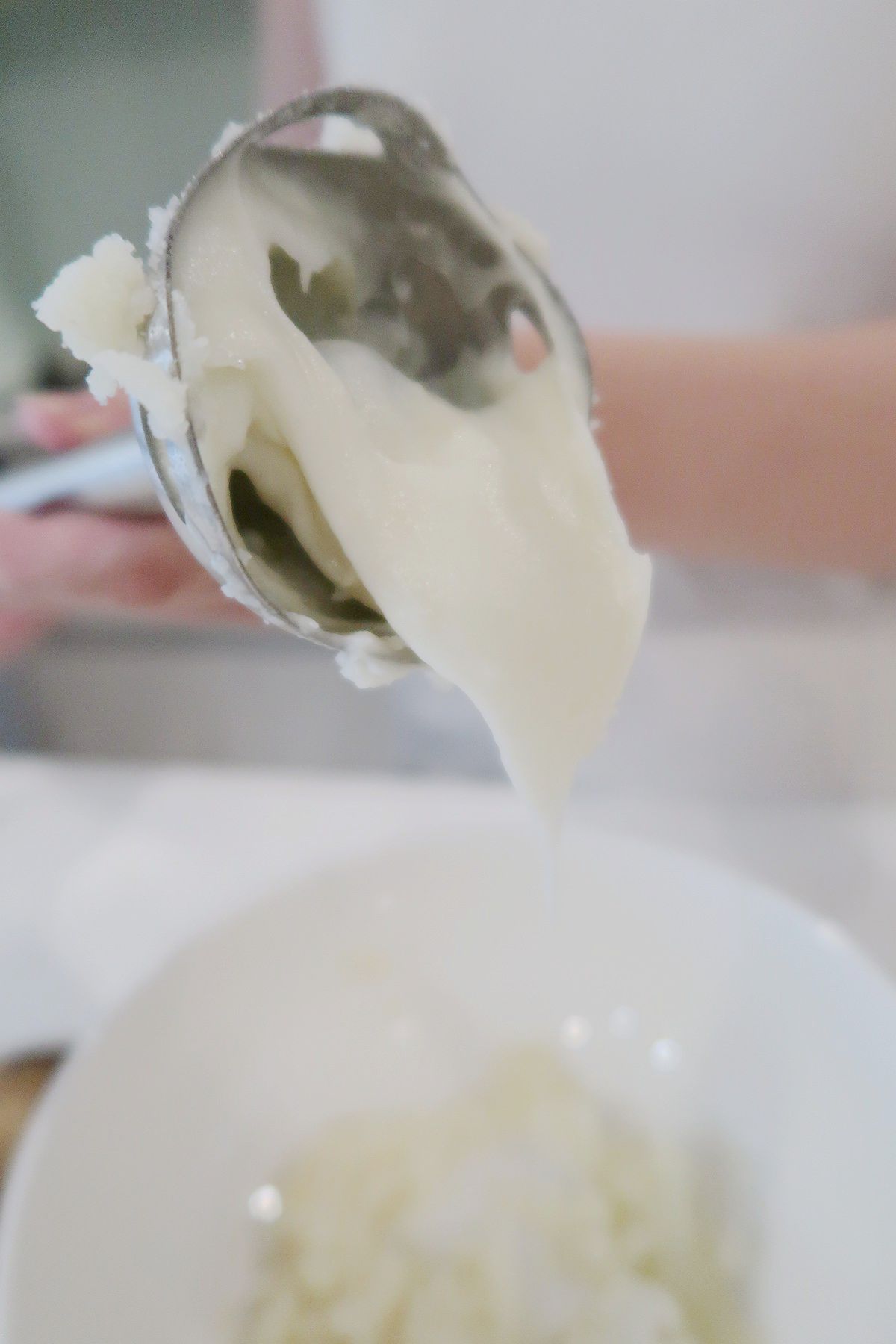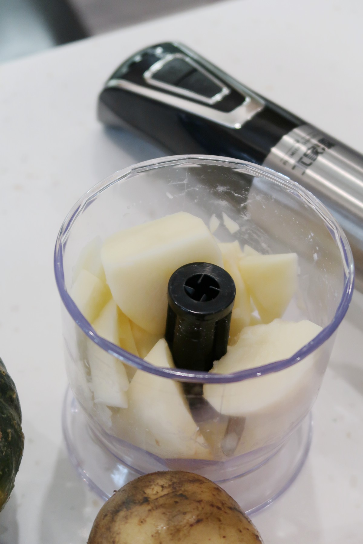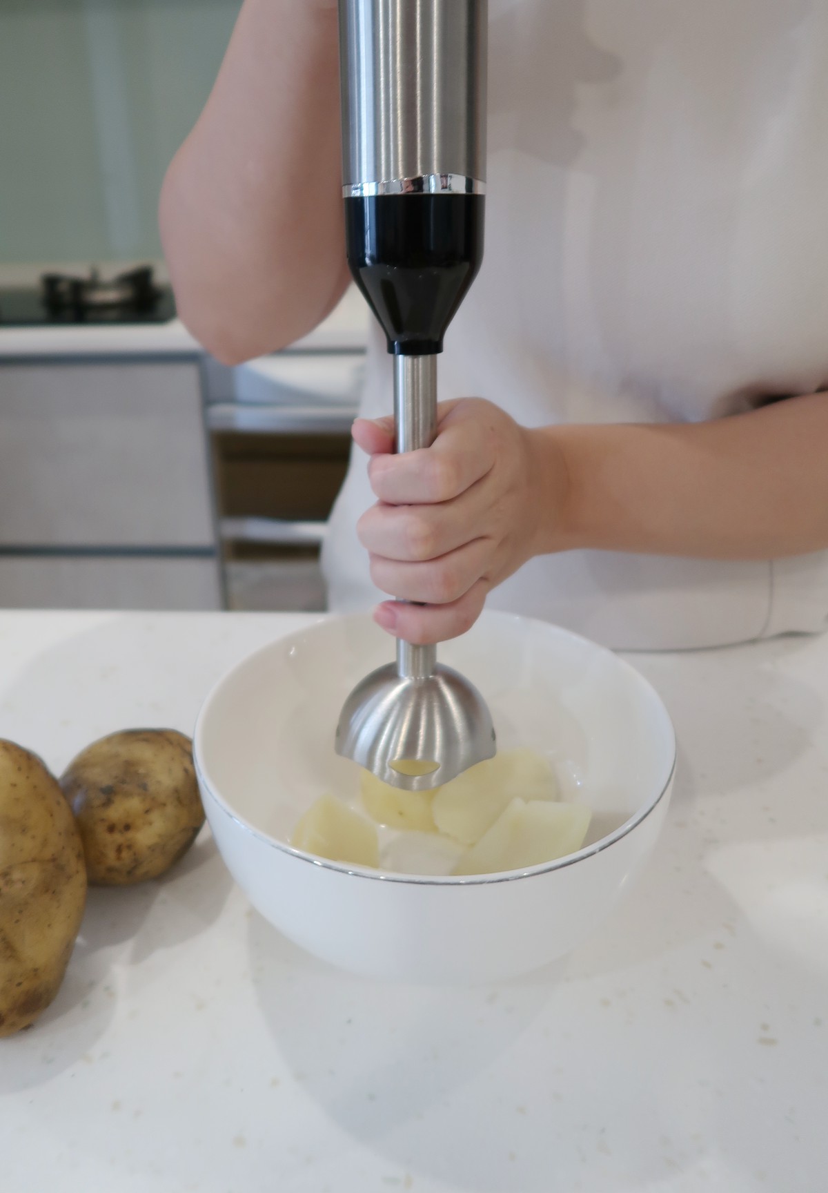 現在煮熟後的馬鈴薯用大家源無線充電攪拌棒切碎超方便快速!