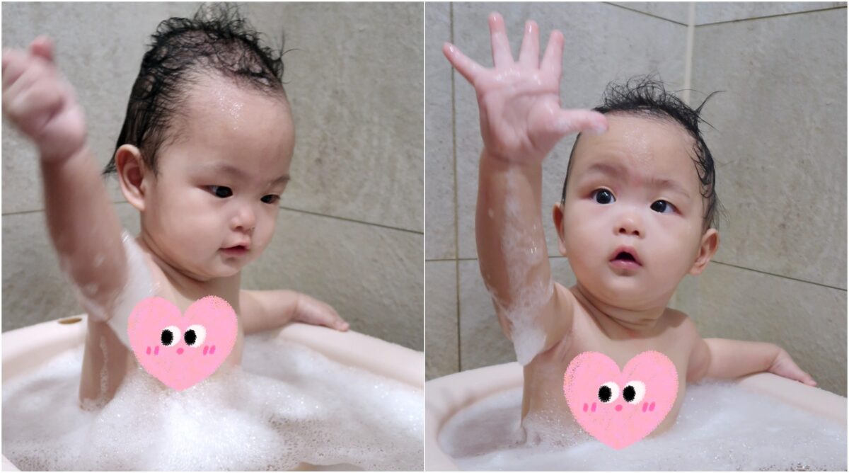 Mo太太平常幫妹妹洗澡會把浴缸弄成泡泡浴給妹妹玩水玩泡泡