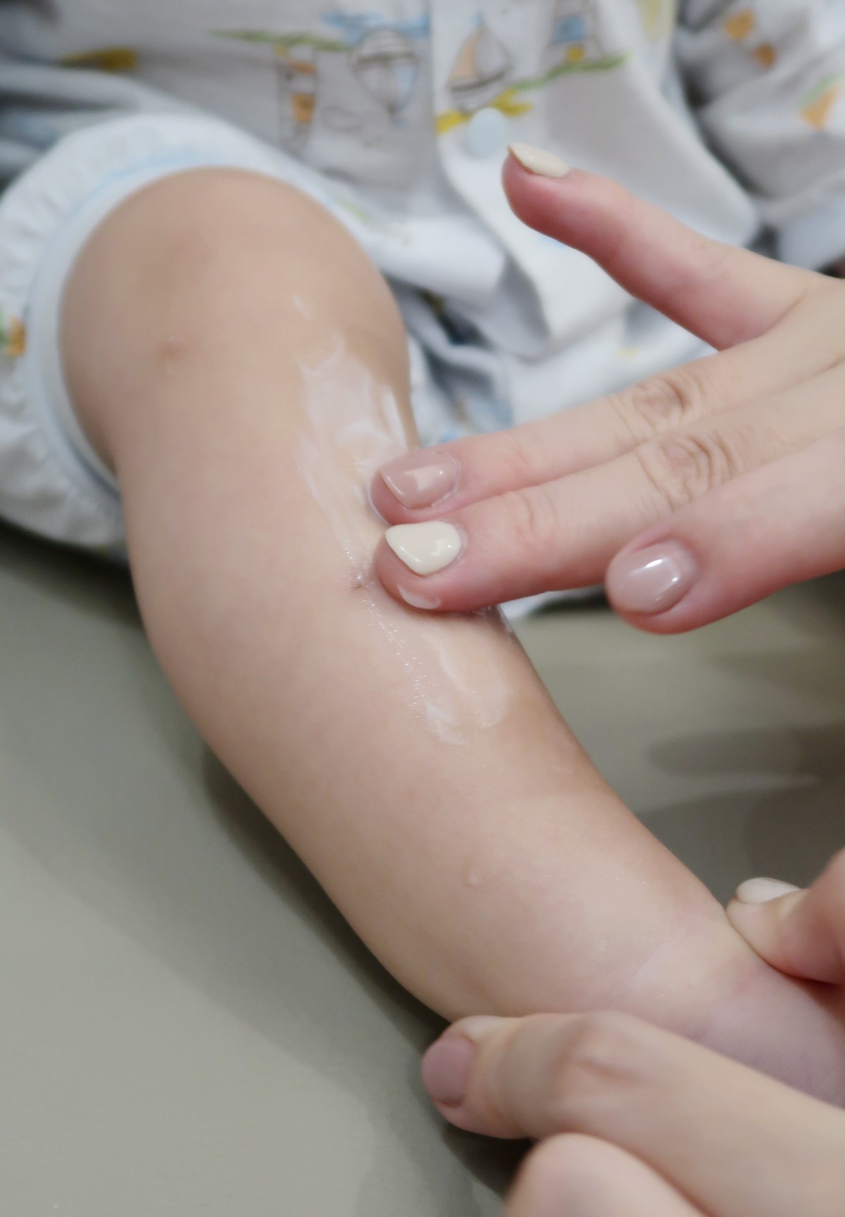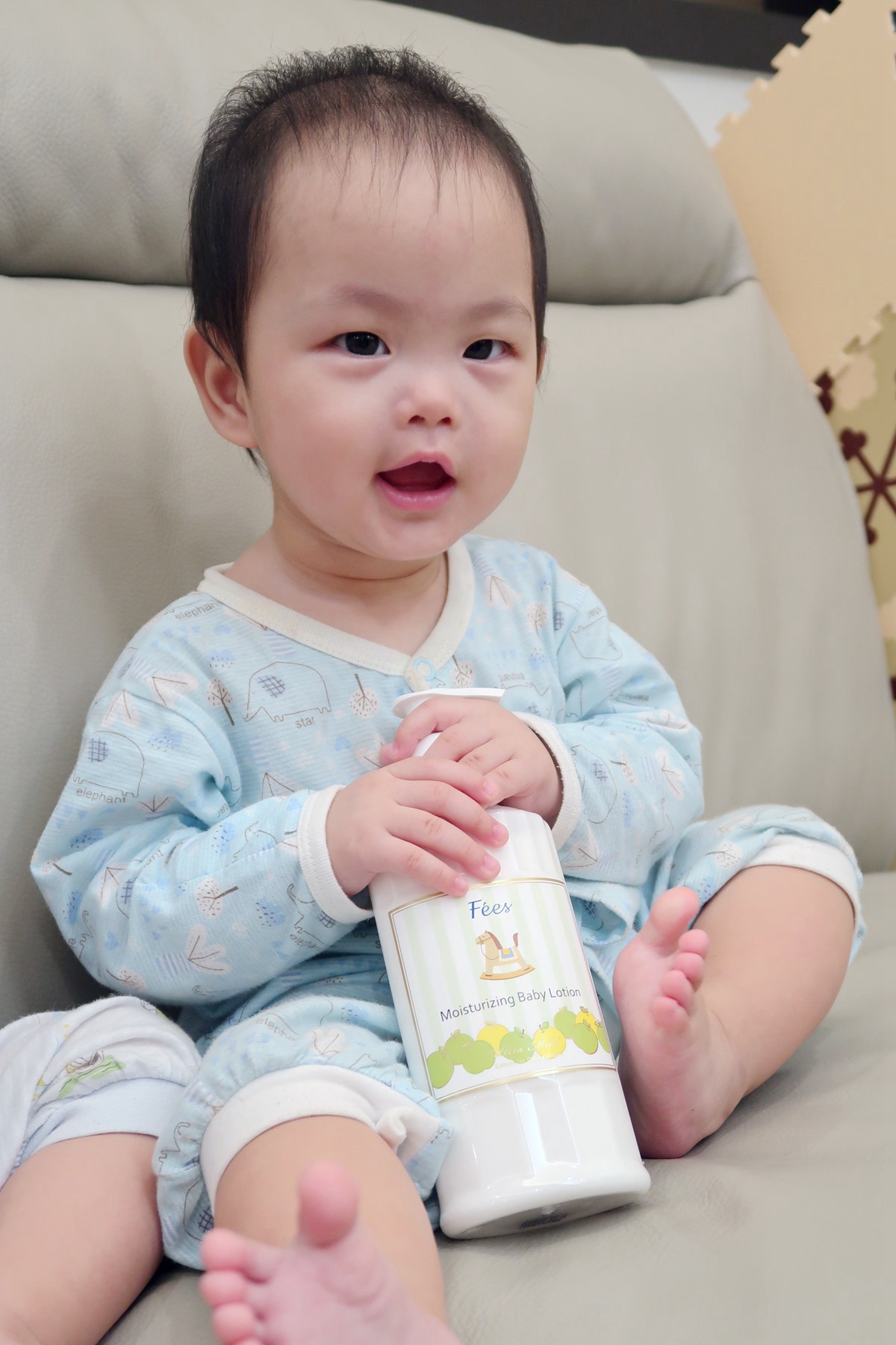 Mo太太平常幫寶寶洗完澡都習慣幫寶寶們擦乳液,寶寶臉頰、手臂到身體、腿部,輕柔按摩至吸收